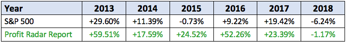 Since then, Profit Radar Report trading recommendations have outperformed the S&P 500 every year (on average, the Profit Radar Report recommends about 25 trades per year).
